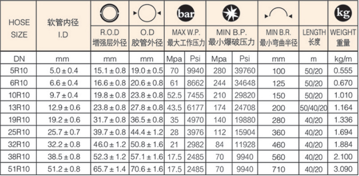 特性:軟管由一層耐油,耐熱合成橡膠內(nèi)膠層,4層鋼絲纏繞層和一層耐天候合成橡膠外膠層組成。軟管執(zhí)行SAE J1517  1000R10標(biāo)準(zhǔn),GB/T10544-2013標(biāo)準(zhǔn)